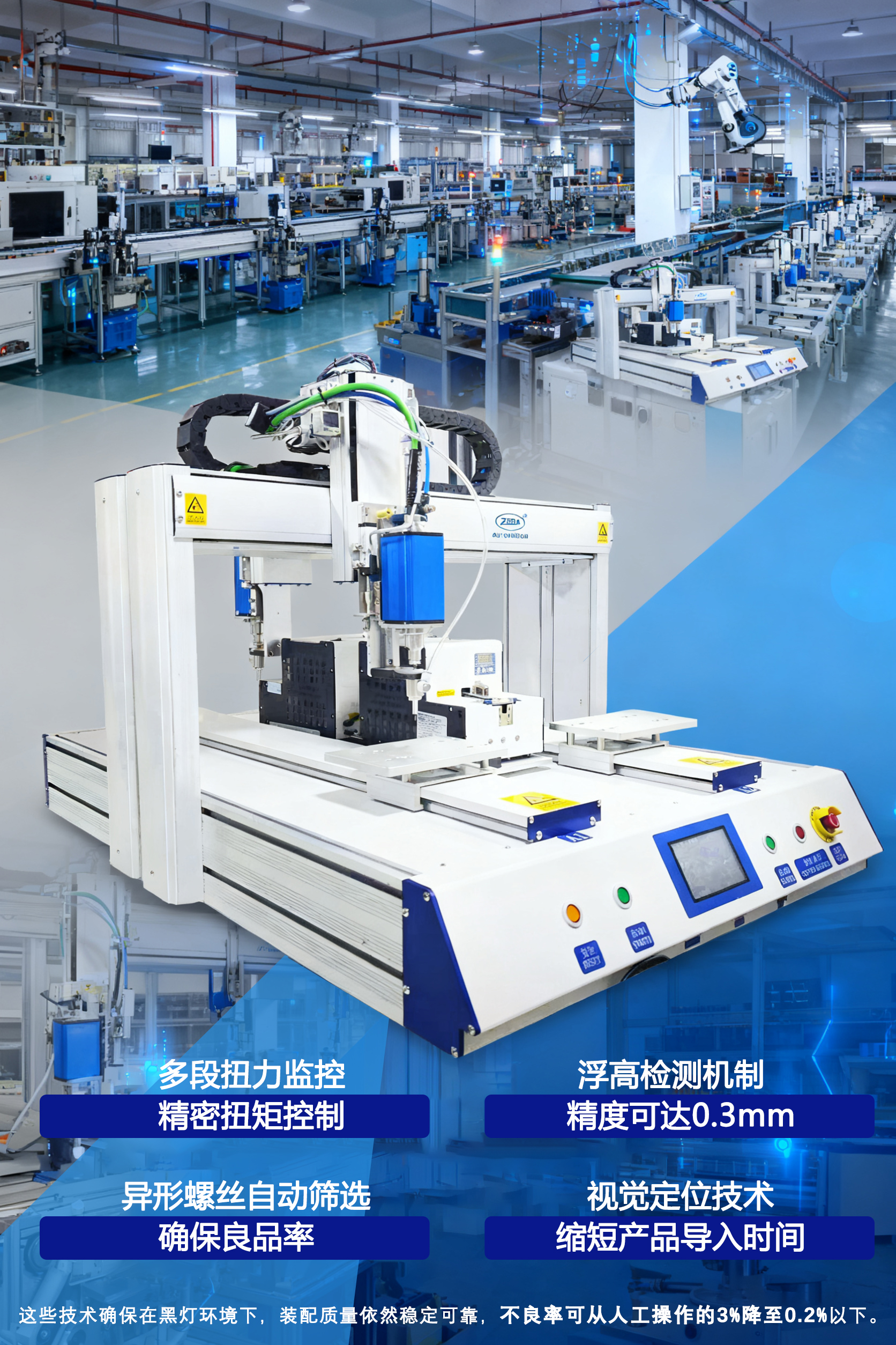 在工业4.0浪潮下,黑灯工厂正以"无人化、数字化"的生产模式引领制造业变革。而自动螺丝机,正是这类智能工厂装配环节的"关键执行者"。